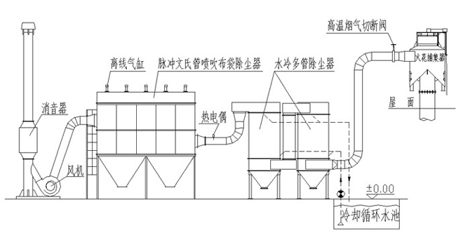2、采用前置一次旋風機+多管冷卻系統(tǒng)將把煙氣溫度降至+150℃。