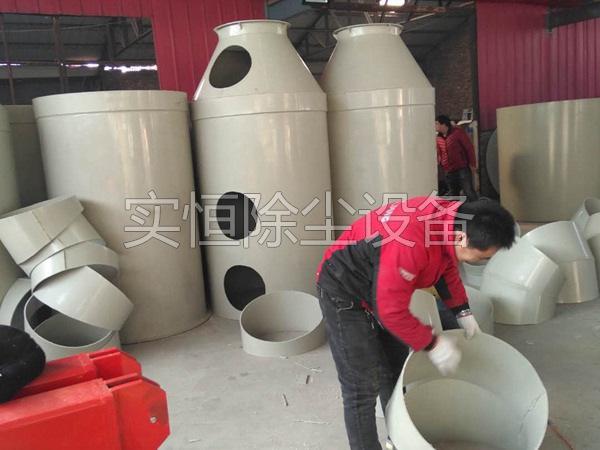 本網(wǎng)站在前面已介紹過(guò)噴淋塔的結(jié)構(gòu)組成,其實(shí)它的結(jié)構(gòu)是非常簡(jiǎn)單的,PP噴淋塔結(jié)構(gòu)主要是由塔體、塔板、再沸器和冷凝器組成的。PP噴淋塔廢氣處理是進(jìn)行粗分離的設(shè)備,因此設(shè)計(jì)的塔板數(shù)量通常較少,一般不會(huì)超過(guò)十級(jí)。PP噴淋塔比較適用于含少量粉塵的混合性氣體的分離,而且各組分一般不會(huì)發(fā)生反應(yīng),而且產(chǎn)物應(yīng)容易液化,粉塵等雜質(zhì)(也可以稱之為高沸物)不易液化或凝固。而當(dāng)混合性氣體從噴淋塔的中部連通進(jìn)入噴淋塔,各塔板間由于存在產(chǎn)物液體組分,產(chǎn)物組分氣體液化的同時(shí)蒸發(fā)部分,而雜質(zhì)由于不能被液化或凝固,當(dāng)通過(guò)有液體存在的塔板時(shí)將會(huì)被產(chǎn)物組分液體固定下來(lái),從而產(chǎn)生噴淋作用,根據(jù)這一原理設(shè)計(jì)和制造噴淋塔應(yīng)運(yùn)而生。
