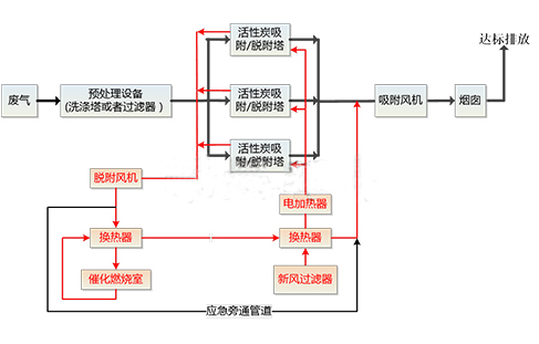 活性炭吸附脫附催化燃燒設(shè)備技術(shù)原理與工藝流程圖
